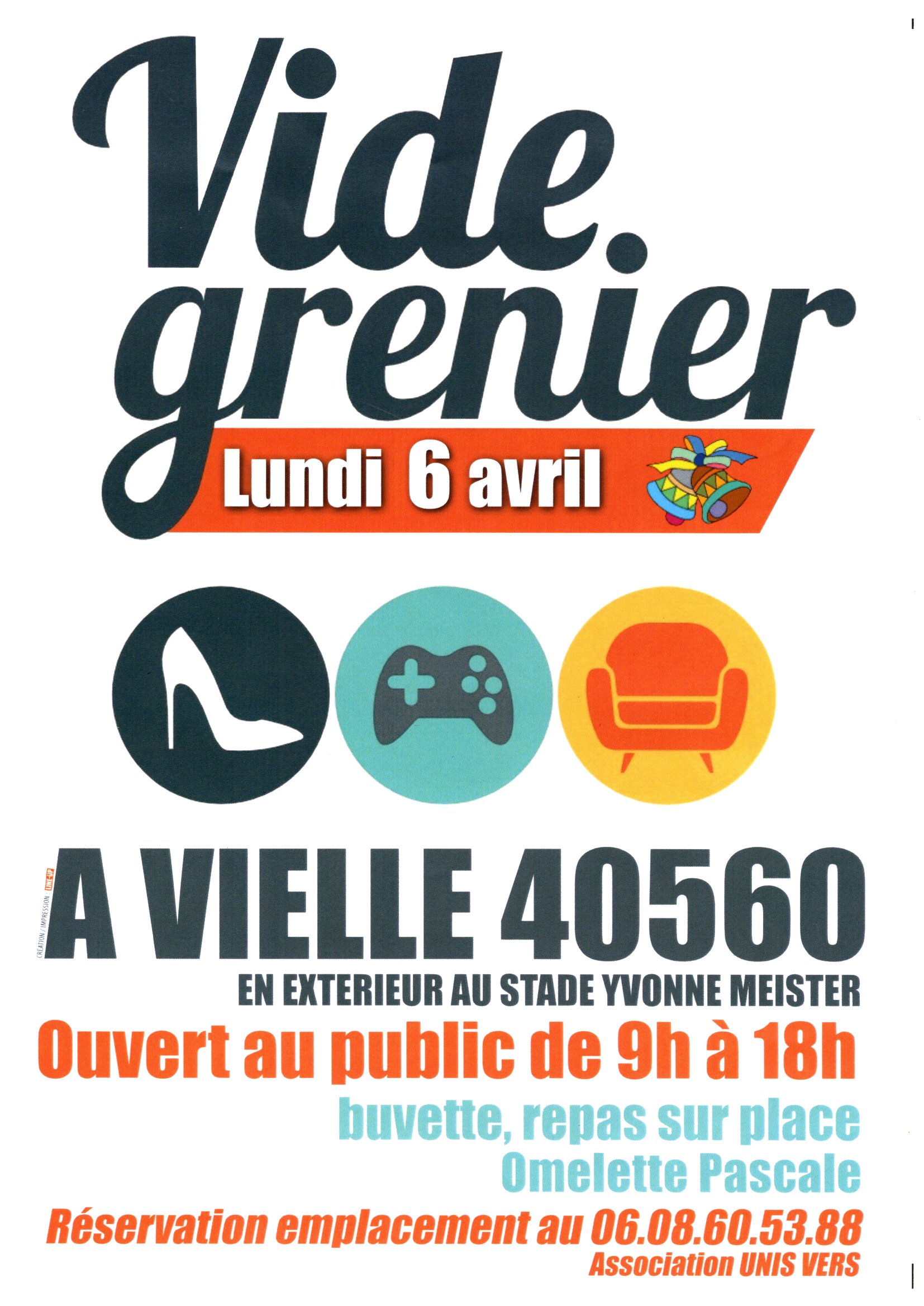 Vide grenier, lundi 6 avril, au complexe sportif Yvonne Meister.